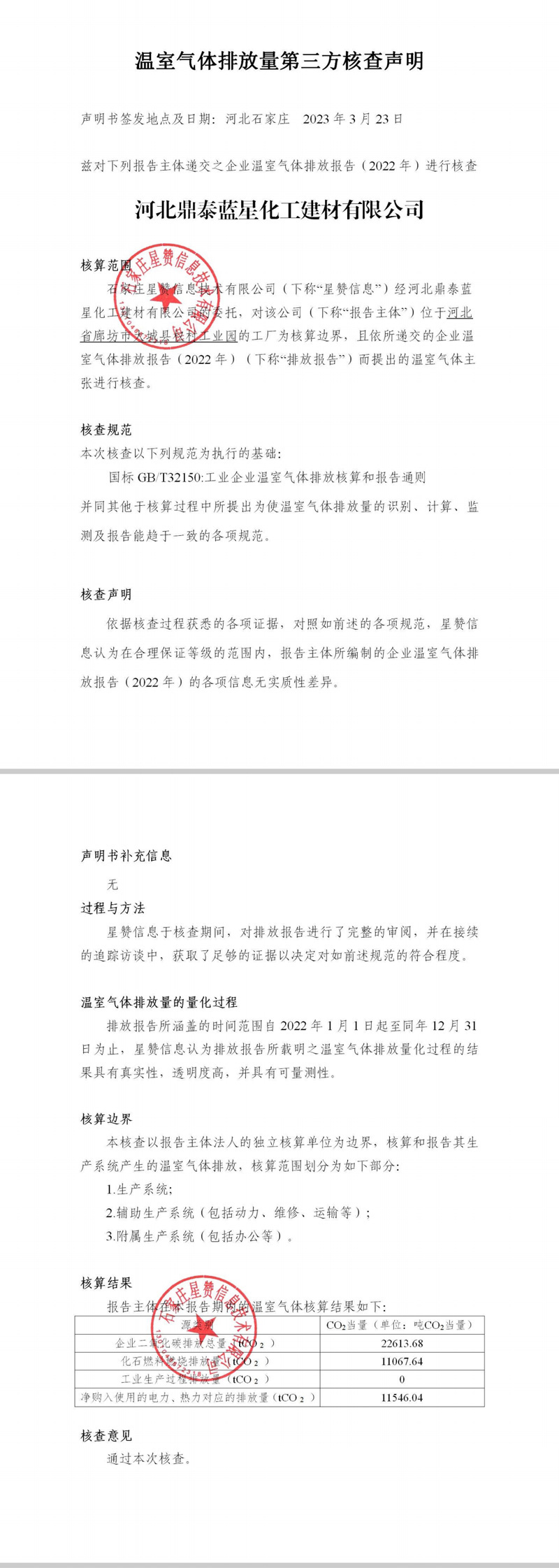 温室气体排放第三方核查声明2022